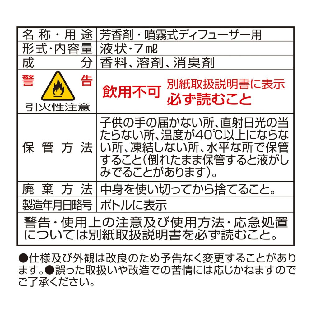 他の画像を見る 季節を感じる爽快な香り L10301 噴霧式ディフューザー専用フレグランスオイル 季節の香り はじけるカンキツMIXの香り NEW 数量限定 販売価格 ¥ 1,100 税込 季節を感じる爽快な香り 詳細を見る お気に入りに登録する