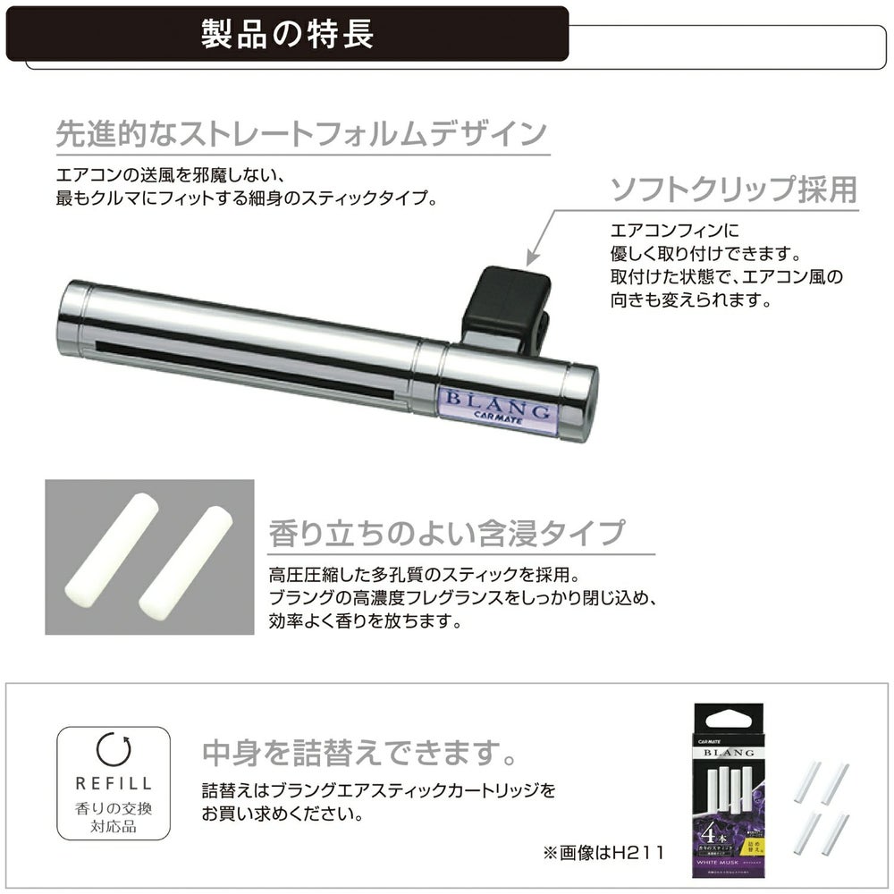 他の画像を見る 濃厚な香りが広がる エアコンカーフレグランス H1411 ブラング エア パワー ホワイトムスク 販売価格 ¥ 990 税込 濃厚な香りが広がる エアコンカーフレグランス 詳細を見る お気に入りに登録する