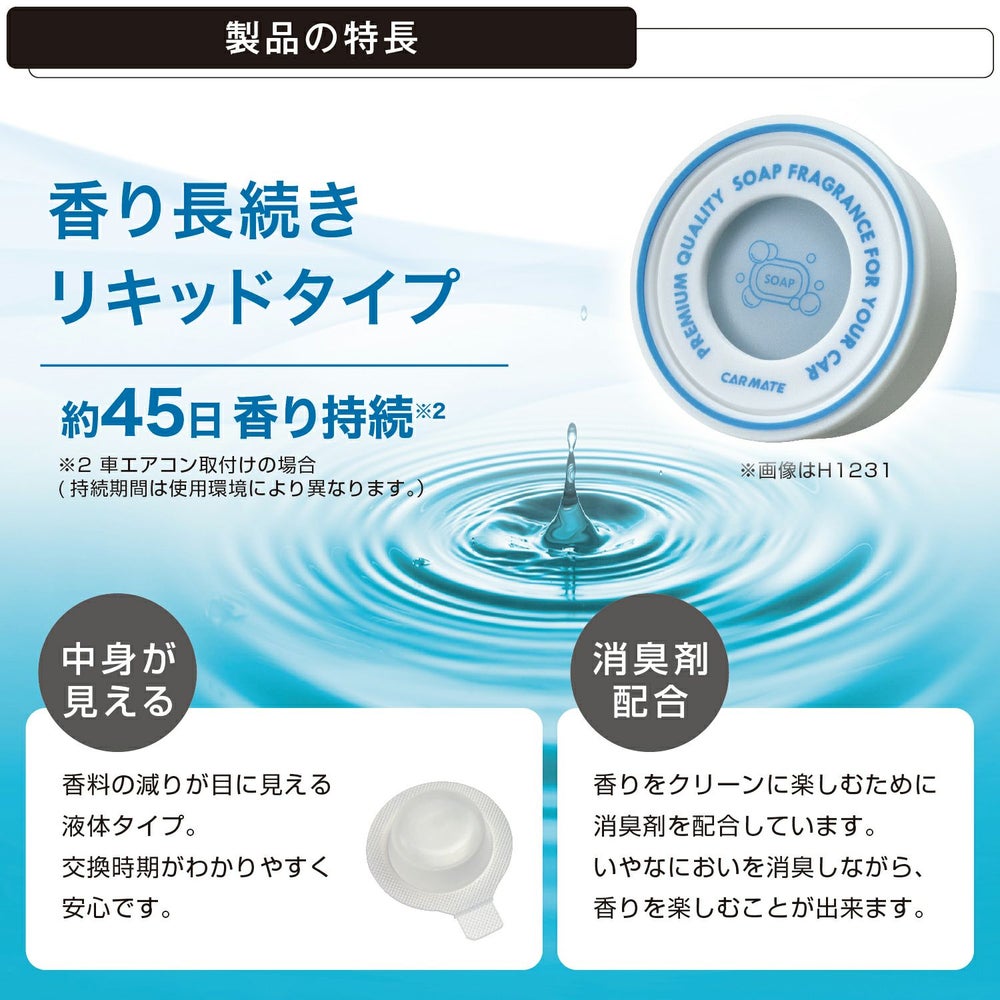 他の画像を見る 360°香り広がる、拡散構造のエアコン吹出口取付タイプの芳香剤 H1433 ブラング エア レイヤー アクアシャワー 販売価格 ¥ 660 税込 360°香り広がる、拡散構造のエアコン吹出口取付タイプの芳香剤 詳細を見る お気に入りに登録する