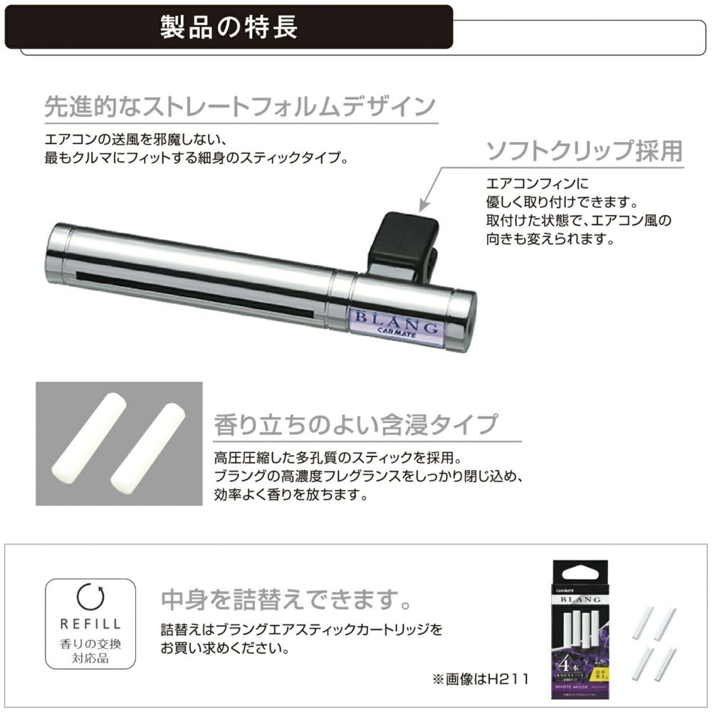 他の画像を見る 香り立ち、モンスター級。大型車向けの5本セット H1291 ブラング AC-IN モンスターフレグランス5P ホワイトムスク 販売価格 ¥ 1,980 税込 香り立ち、モンスター級。大型車向けの5本セット 詳細を見る お気に入りに登録する
