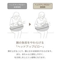 体重の約30%もあると言われている赤ちゃんの頭。「ヘッドアップピロー」が赤ちゃんの頭をサポートし授乳中の腕の負担を軽減。赤ちゃんが母乳を飲みやすく吐き戻しをしにくい姿勢をキープし、快適な時間を過ごせます。