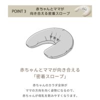 赤ちゃんとママが授乳しやすい姿勢で向き合えます。赤ちゃんのカラダ全体がママの方を向くので、赤ちゃんが母乳を飲みやすくなり、ママと赤ちゃんのコミュニケーションをより豊かにします。