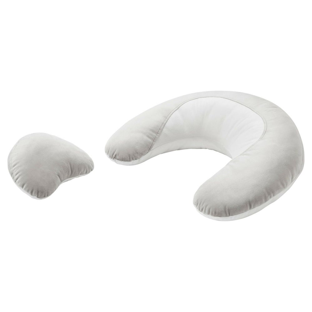授乳時の赤ちゃんを抱き寄せるママの手を再現した形状で、授乳時の腕の負担をやわらげます。