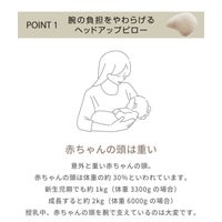体重の約30%もあると言われている赤ちゃんの頭。「ヘッドアップピロー」が赤ちゃんの頭をサポートし授乳中の腕の負担を軽減。