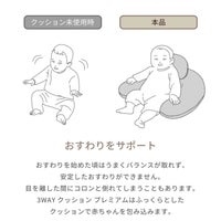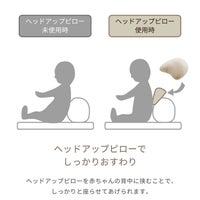 ふっくらとしたクッションがおすわり時の転倒を防ぎます。ヘッドアップピローが赤ちゃんの背もたれになります。家事をしている間など、近くに座らせたい時に便利です。