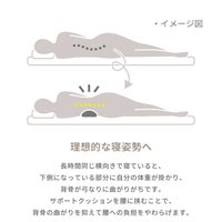 サポートクッションを腰に挟むことで、背骨が曲がりがちな横向き寝の姿勢をサポートして腰への負担を和らげます。