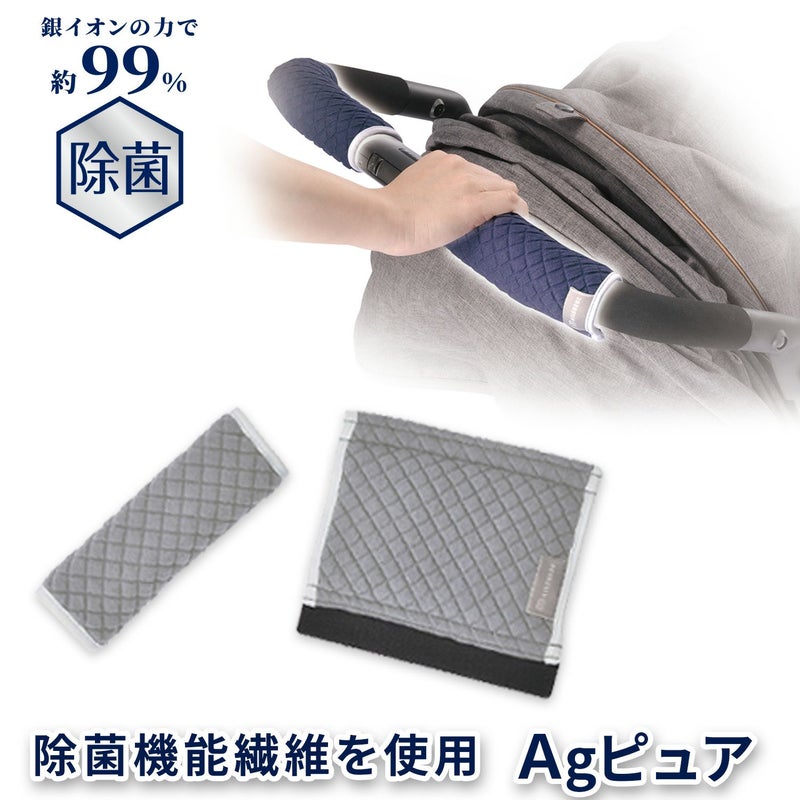 銀イオンの力で約99%除菌するベビーカーのハンドルカバー。キレイが続く清潔ファブリックでベビーカー等のハンドルの汚れを防止。