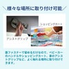 ●面ファスナーで留めるだけだから、様々な場所に取り付け可能。ベビーカーのハンドルやショッピングカート、車のアシストグリップなど、よく触れる場所に取り付けできます。