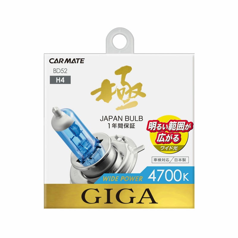 GIGAハロゲンバルブは「独創的な輝き」をコンセプトに開発された「明るさ」と「美しさ」を兼ね備えた高品質のハロゲンバルブシリーズです。 全アイテムに高級クリスタルガラスを採用し、ガスの高圧化、フィラメントの強度アップなどバルブタイプ毎に最適な改良を加えることで、高効率ハロゲンバルブの耐久性を向上! 純正ハロゲンバルブと交換するだけで、視認性に優れた明るく美しい照射光へのチューンアップをお楽しみいただけます。