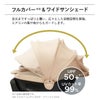 ●車内への紫外線、エアコン風から赤ちゃんを足元までしっかり守る「フルカバー&ワイドサンシェード」。お子さまの様子も確認できるメッシュウィンドウ付。
