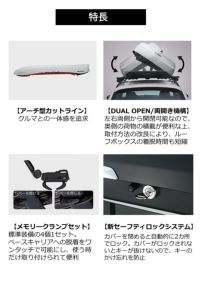 ルーフボックスの取付部(メモリークランプ)に手が届きやすく、着脱しやすくなっています。