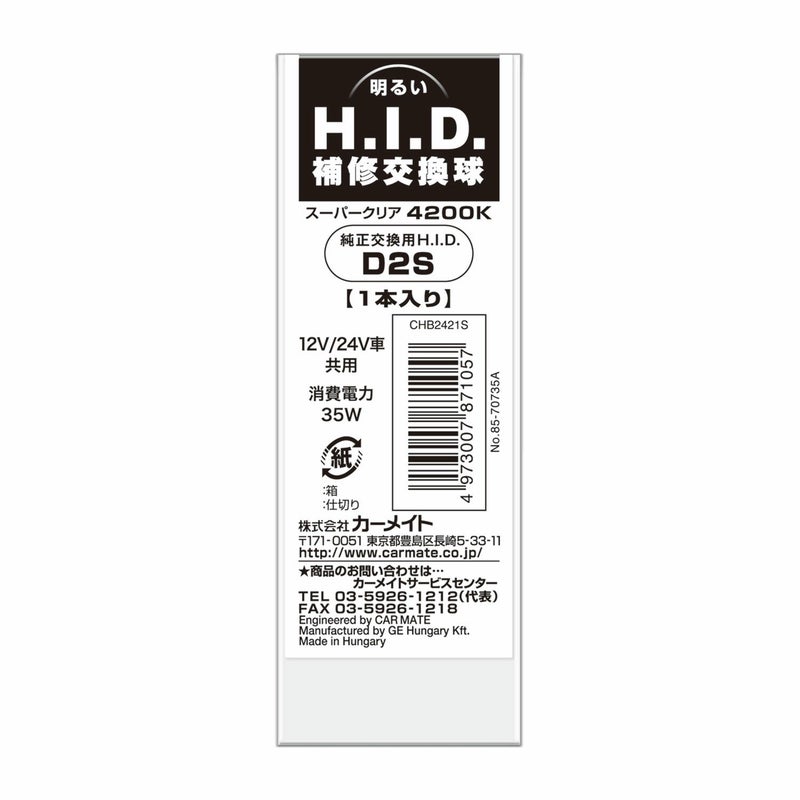 品名 CHB2421S SUPER CLEAR 4200K D2S BURNER