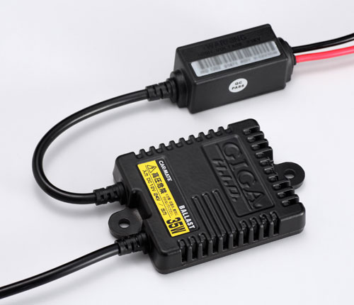 ハイブリッド車などの電圧変動の大きい車両にも対応する新開発の高性能35Wバラスト。 車両電圧の変動を吸収して、点灯を維持する安定化回路と、ランプ電圧の異常を感知した場合は、直ちに電源をカットする完全回路を内蔵