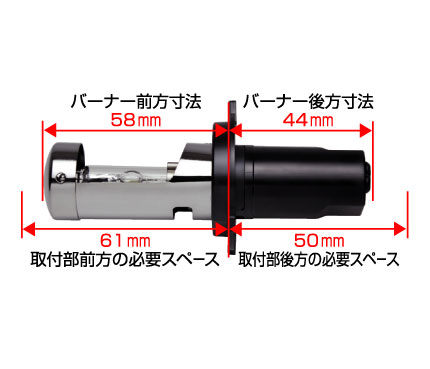 新開発の双方向小型ソレイドの採用により、バーナー後方寸法40mmというハロゲンバルブを凌ぐ大幅なサイズの小型化を実現!