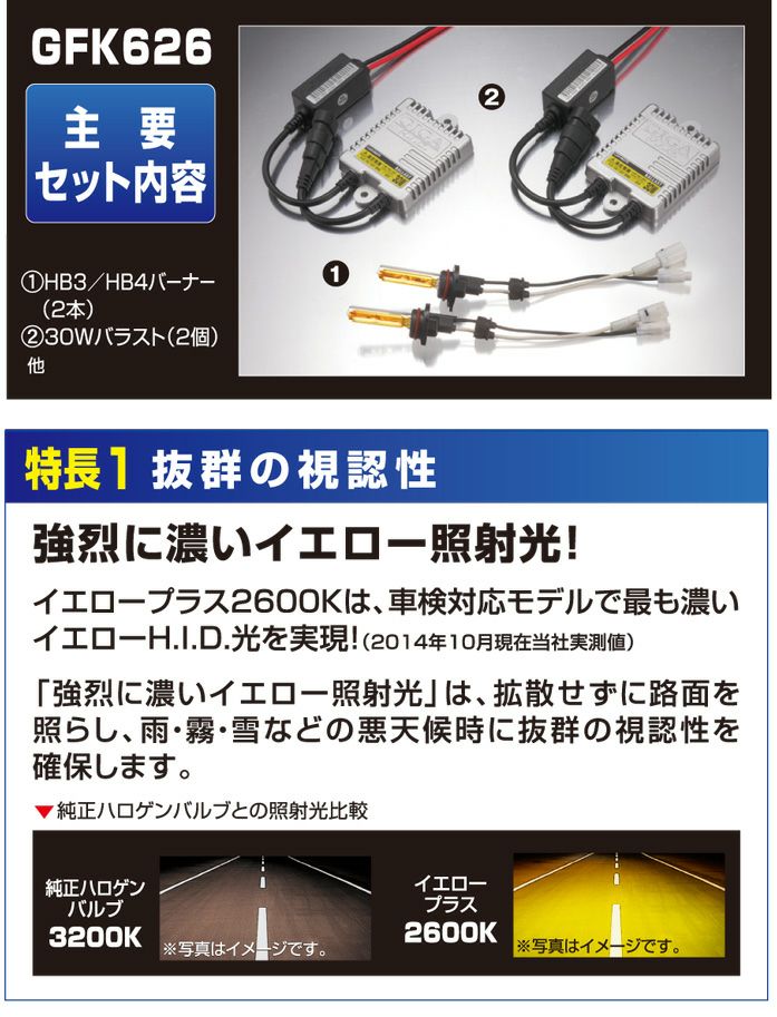 フォグランプ専用設計のH.I.D.バーナーは全3種類をラインナップ。