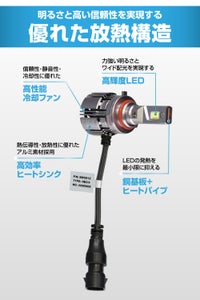 長時間使用による明るさ低下を防ぐため、銅基板、ヒートパイプ、冷却ファン、高効率アルミヒートシンクといった最新の放熱技術を採用。