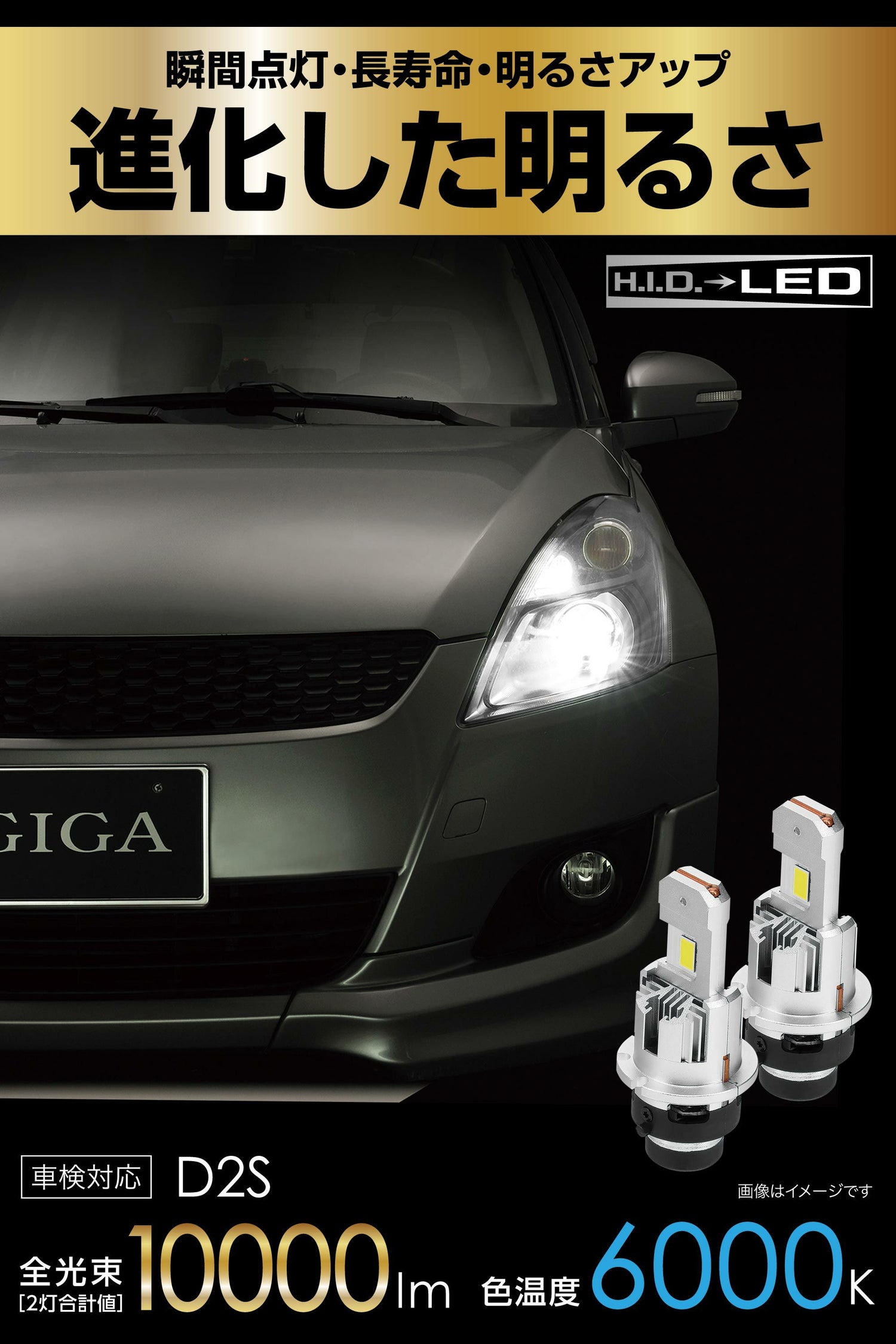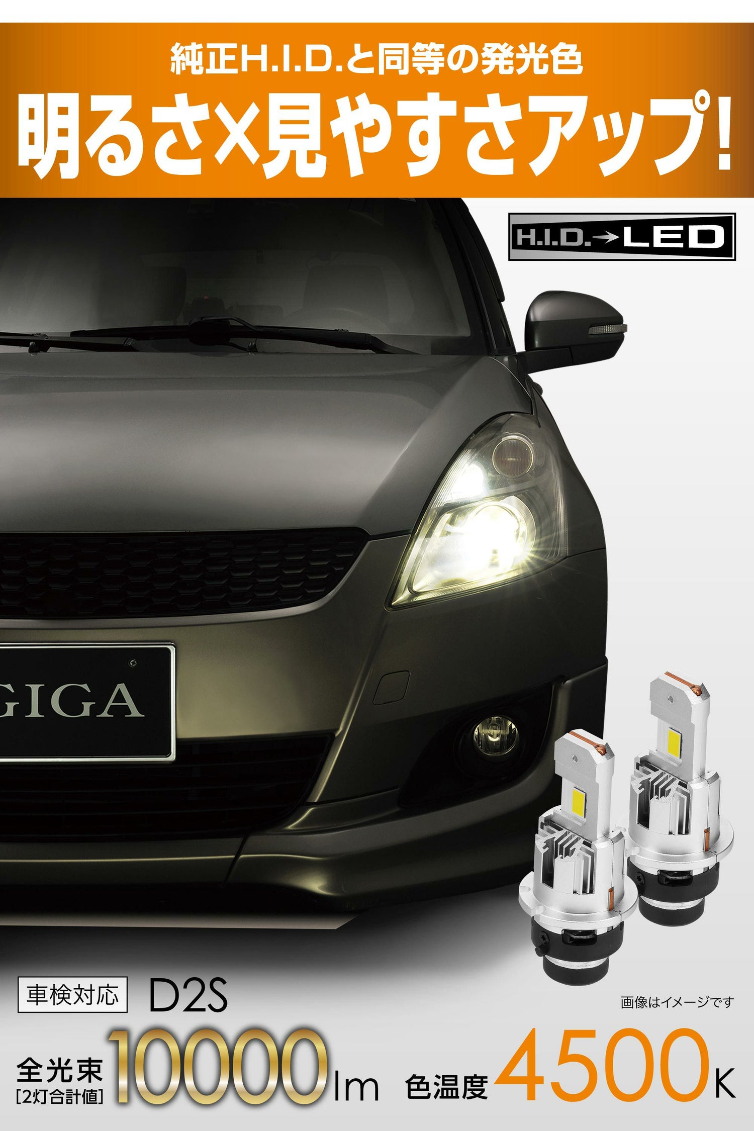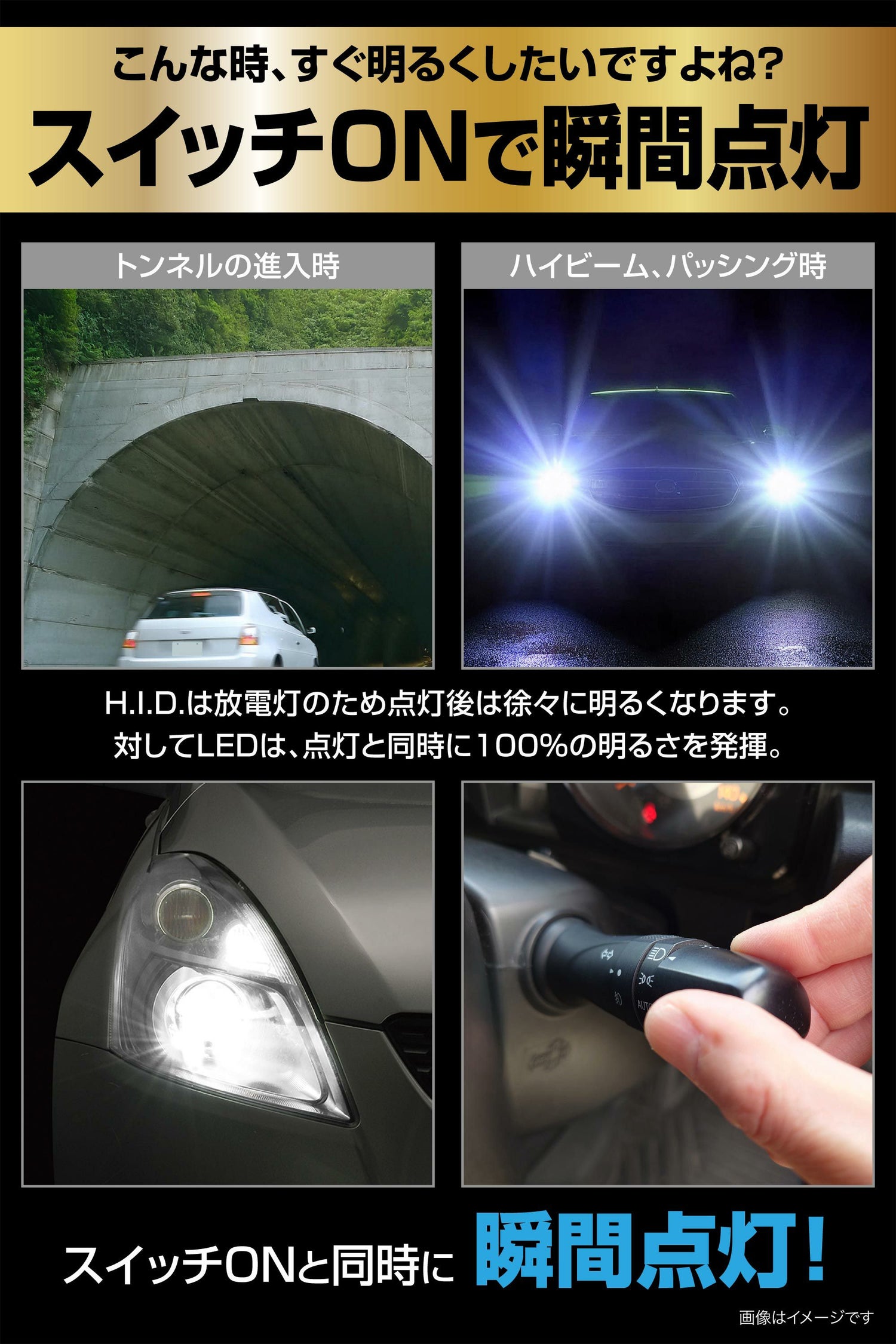 最新の高輝度LEDを2個搭載。H.I.D.を簡単により明るくしたい人に最適な製品です。