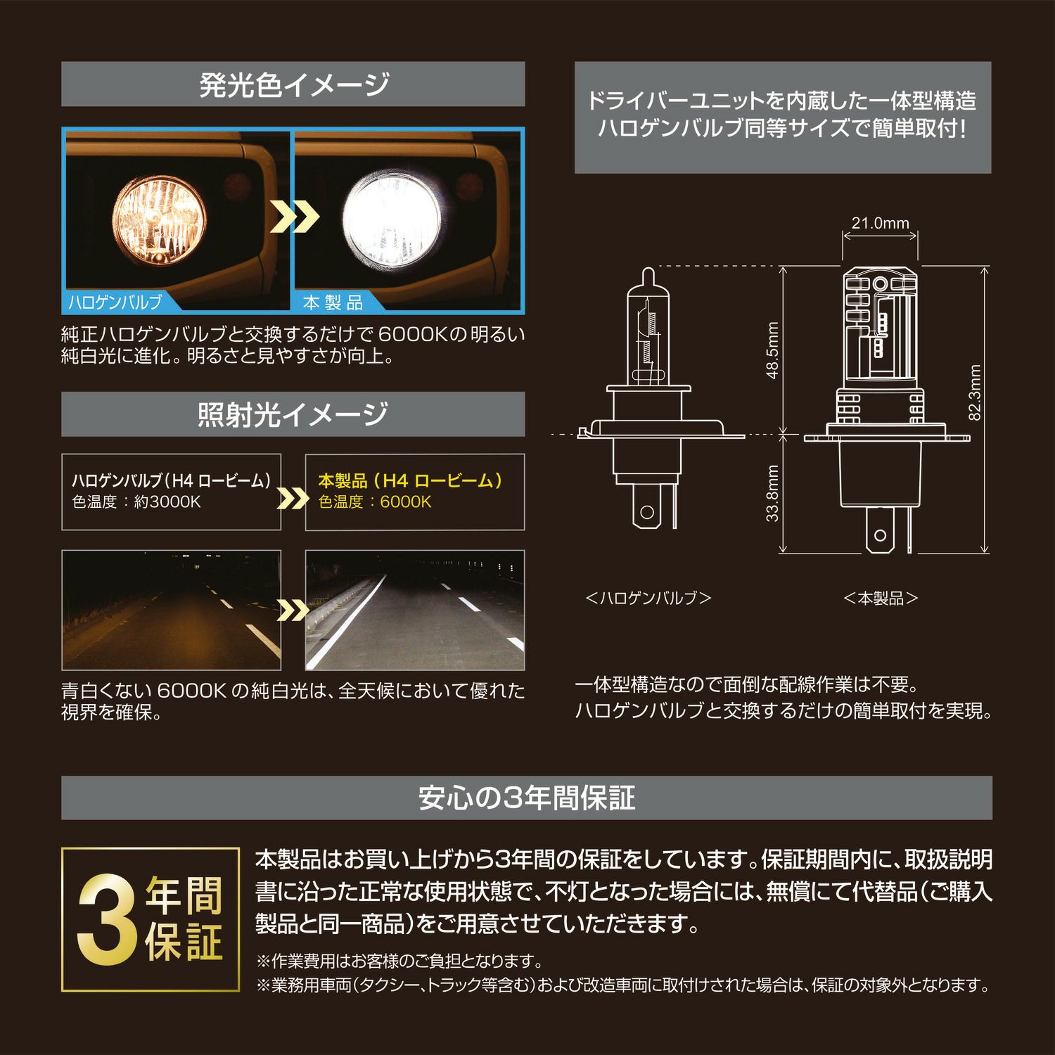 他の画像を見る ハロゲンバルブと同等サイズで簡単交換! BW562 GIGA LEDヘッド&フォグバルブ C3600 6000K HB3/HB4 販売価格 ¥ 10,780 税込 ハロゲンバルブと同等サイズで簡単交換! 詳細を見る お気に入りに登録する