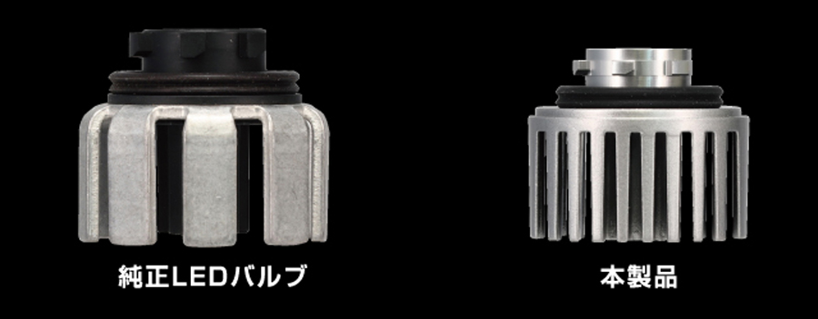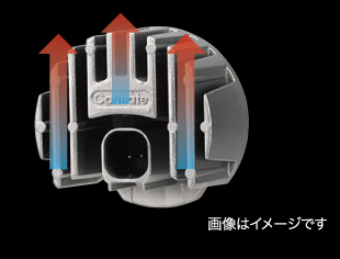 | LEDバルブにとって重要な性能として放熱性能があります。放熱性能が悪いと、明るさを確保できなかったりLEDの寿命が短くなったりしてしまい ます。放熱性能を高めるにはヒートシンクを大型化する方法がありますが、バルブサイズが大きくなるため取り付けや適合などの問題が発生します。本製品は純正バルブと同サイズながら、優れた放熱性能を誇る独自のフィン形状ヒートシンクを採用。 ヒートシンクに溜まった熱を素早く放熱 することに成功しました。LEDバルブにありがちな熱による明るさの低下を最小限に抑制、 また3年間保証の長寿命も実現し安心してご使用 いただけます。 | ![]() |