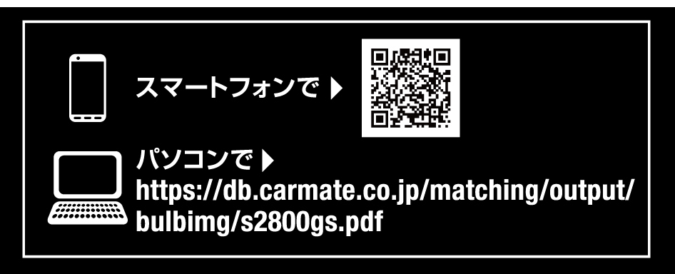 (※)LEDフォグバルブS2800GSシリーズ適合車種一覧表 (https://db.carmate.co.jp/matching/output/bulbimg/s2800gs.pdf) をご確認ください。