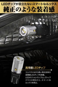 高輝度LEDチップを6個搭載。LEDポジションランプとしてトップクラスの400lmの明るさ。純正の白熱球と比べて約8倍(※)の明るさを実現!