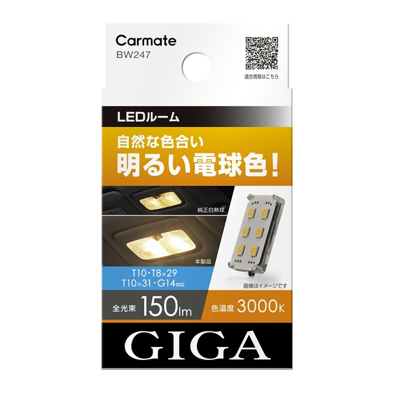 高輝度LEDを6個搭載したLEDルームランプ。フロントルームランプやセンタールームランプに装着することで室内の隅々まで照射。自然な色合いの電球色で落ち着いた車内空間を演出します。4つの口金に対応することで高い汎用性を実現。