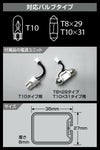 ・本製品は、12V自働車用T10、T8×29、T10×31タイプの交換用バルブですが、通常のタイプと形状が異なります。車種への適合は、必ず当社適合情報でご確認ください。