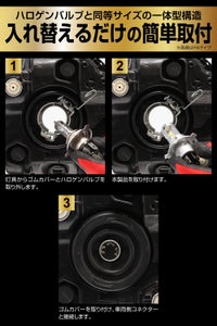 ハロゲンバルブと同等サイズで、入れ替えるだけの簡単取付。