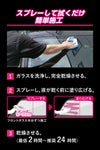 (2)スプレイヤーをガラス面から10~20cm離し、フロントガラス半分につき15~25回程ずつスプレーし、液が乾く前に手早く塗り広げる。
