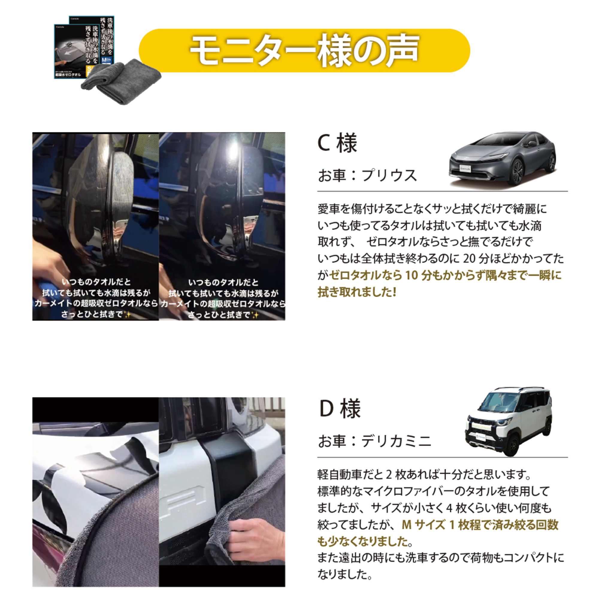 洗車後の水滴を残さず拭き取る!超吸水ゼロタオル!