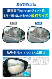 ドアミラー形状に合わせた最適サイズのフィルムは、貼り付けるだけで車種専用ならではのフィット感を体感することができます。