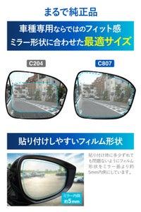 ドアミラー形状に合わせた最適サイズのフィルムは、貼り付けるだけで車種専用ならではのフィット感を体感することができます。