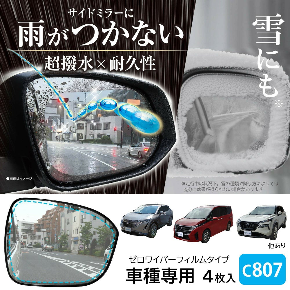 ゼロワイパー超撥水フィルム 車種専用 ドアミラー/サイドガラス用 4枚入