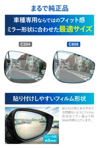 ドアミラー形状に合わせた最適サイズのフィルムは、貼り付けるだけで車種専用ならではのフィット感を体感することができます。