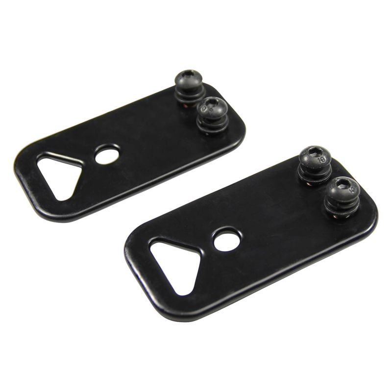 ルーフデッキ専用のオプション。ルーフデッキのTスロットに取付けて使用。荷物がずれるのを防いだりベルトが固定できるユニバーサルなブラケット。ベルト用の穴以外にM10用の穴も有ります。ブラケットは傷が付きにくいコーティングを施しています。ストレートタイプ 2個入