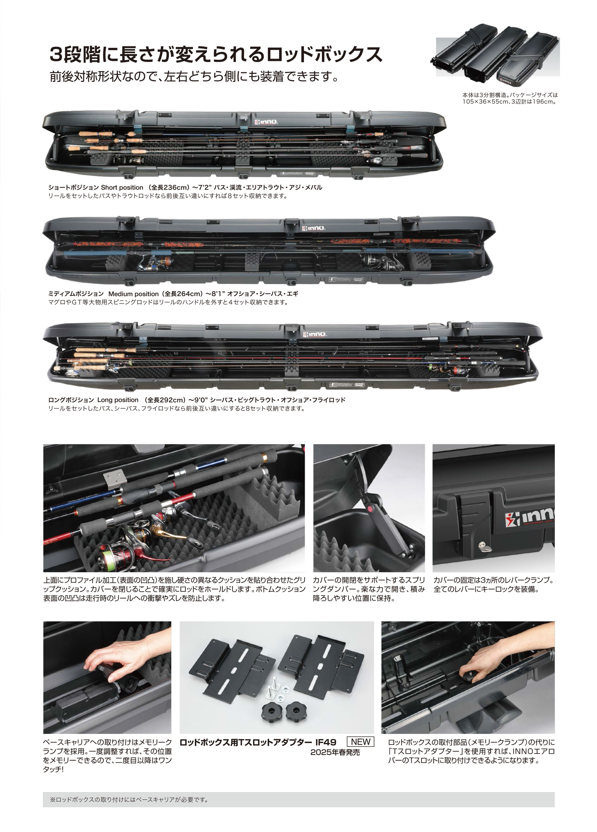 他の画像を見る 9ftまで収納できる、長さ調整可能なルーフ用ロッドボックス IF44BK ロッドボックス290 ルート限定品 メーカー希望小売価格 ¥ 80,300 販売価格 ¥ 80,300 税込 9ftまで収納できる、長さ調整可能なルーフ用ロッドボックス 詳細を見る お気に入りに登録する