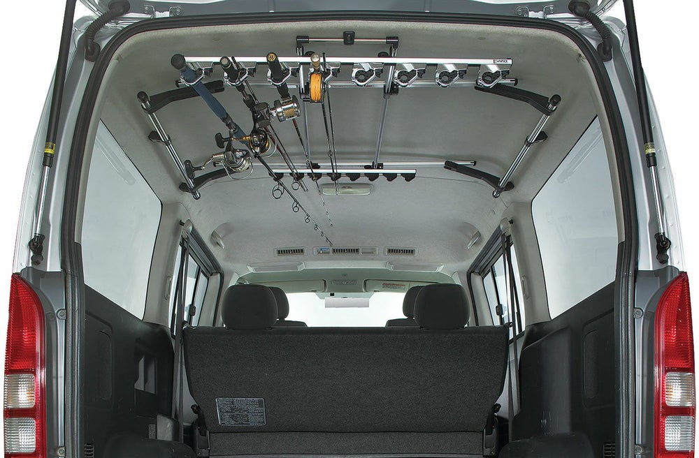 8本積。別売オプションで最大10本まで可能。1ピース、2ピースどちらもOK!シーバス・オフショア・フライロッドも積載可能。デュアルホールドタイプ  ワイド
