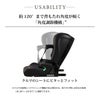 ●取り付けカンタン「らくらくISOFIX取付」+足元スッキリ 「テザーベルトタイプ」。金具に正しく固定されないと縮まない、ミスユース防止機構も搭載。
