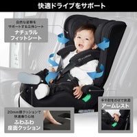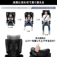 ・取り付けカンタン「らくらくISOFIX取付」+足元すっきり 「テザーベルトタイプ」。金具に正しく固定されないと縮まない、ミスユース防止機構も搭載。