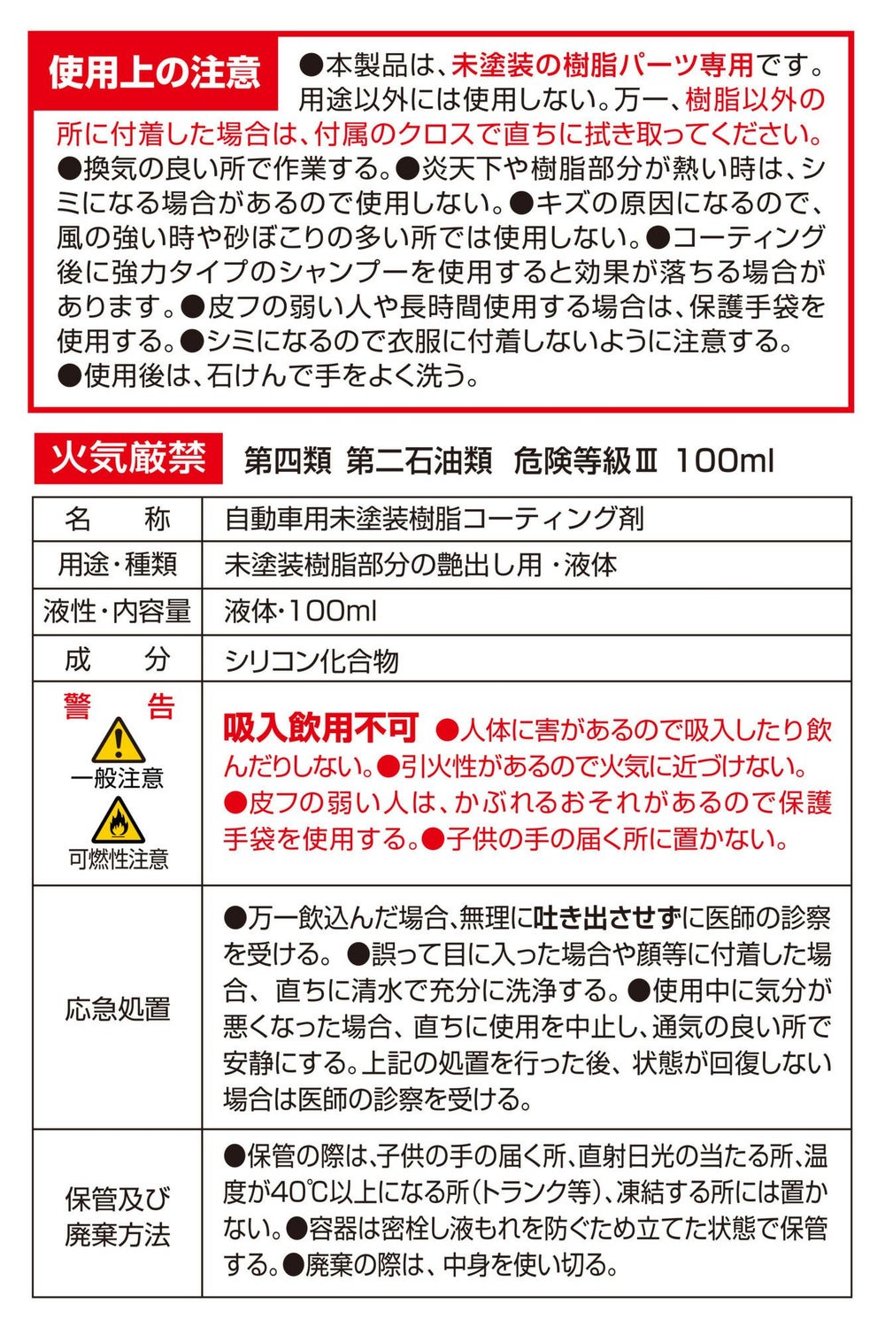 他の画像を見る 白くなってしまった樹脂パーツ(未塗装)の色とツヤが復活 C136W 黒樹脂復活剤 プレミアムコート 2セット NEW WEB限定品 販売価格 ¥ 1,580 税込 たっぷり使える2回分 黒樹脂の面積が広いSUV・クロカンにおススメ 詳細を見る お気に入りに登録する