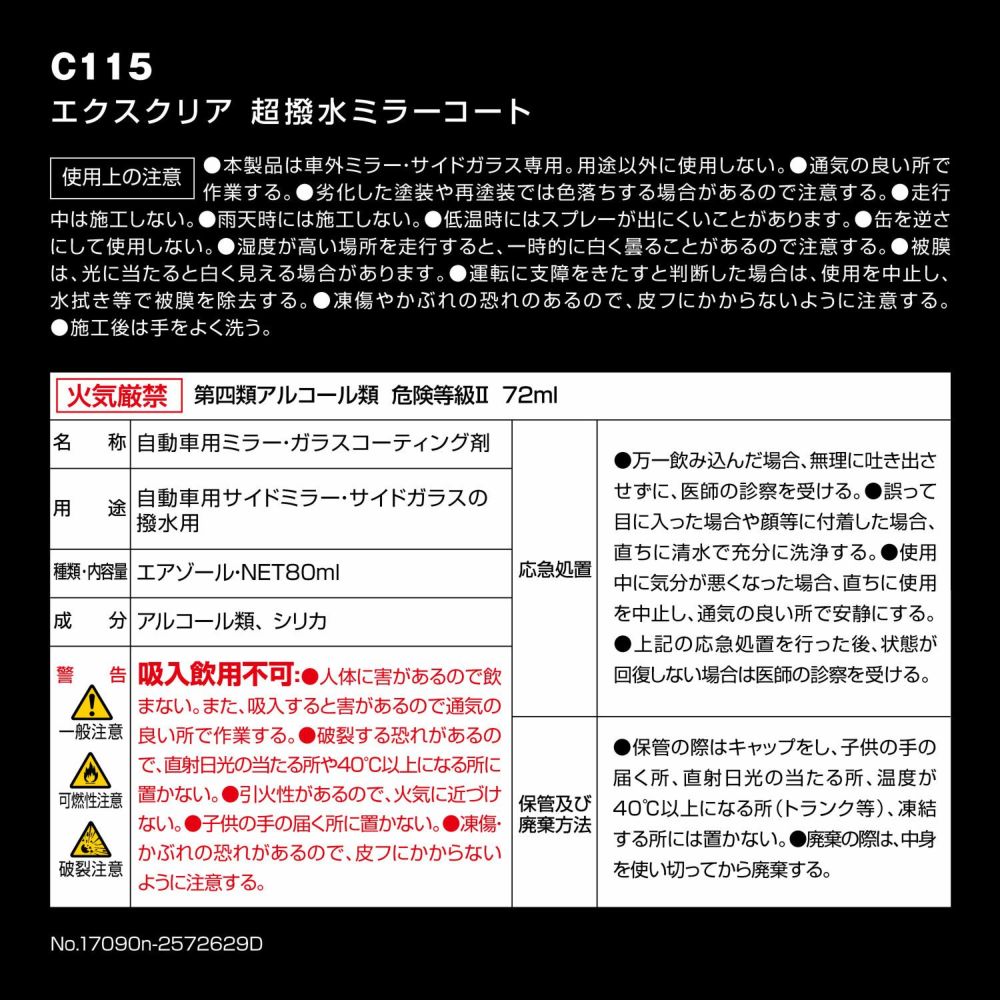 他の画像を見る 雨が付かないから、後方視界が超クリア!ミラー用超撥水コート C115 エクスクリア 超撥水ミラーコート 販売価格 ¥ 990 税込 雨が付かないから、後方視界が超クリア!ミラー用超撥水コート 詳細を見る お気に入りに登録する