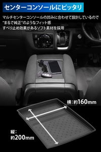 樹脂表面のセンターコンソール中央部をシリコン製トレーで小物置きスペースに。トレーの内寸サイズは約215×160mm。スマートフォン・財布・チケット・電子タバコなどを一時的に置くのに便利。