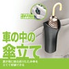 純正カップホルダーに入る、折りたたみ傘専用の傘入れ。濡れた折りたたみ傘を入れても、車内が濡れません。折りたたみ日傘の収納にも最適。付属のフックでシートバックポケット等にも取付可能。本製品にヒモを通して、ヘッドレストや車両フック等にも取付可能。(ヒモは付属していません。)