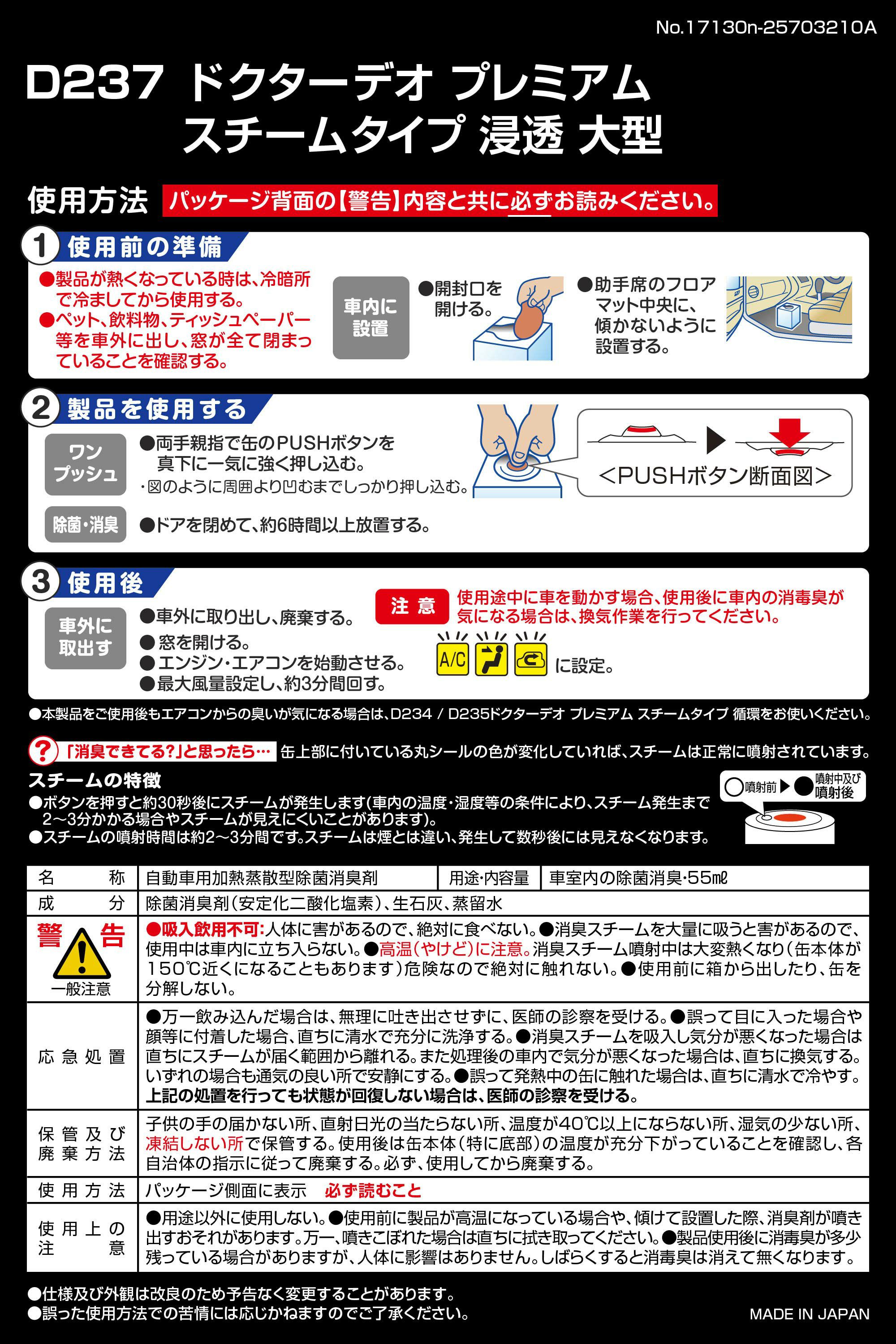 ★本製品をご使用後もエアコンからの臭いが気になる場合は、D234/D235 ドクターデオ プレミアム スチームタイプ 循環 をお使いください。