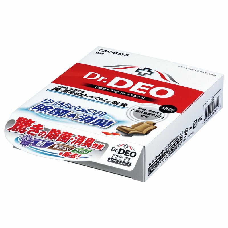 ドクターデオは除菌消臭成分に安定化二酸化塩素を採用。菌や悪臭成分を分解し、強力除菌&消臭。ドクターデオの成分「安定化二酸化塩素」は医療機関や飲食店で業務用としても使われており安心してお使いいただけます。シート下に置くだけ。目立たない所からしっかり消臭。無香タイプ。内容量200g。