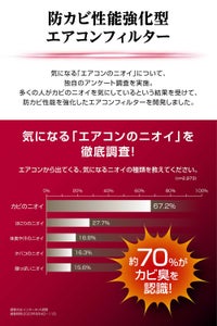 多くの人がカビのニオイを気にしているという結果を受けて、防カビ性能を強化したエアコンフィルターを開発し、防カビ性能200%を実現しました(弊社従来エアコンフィルター比較)。