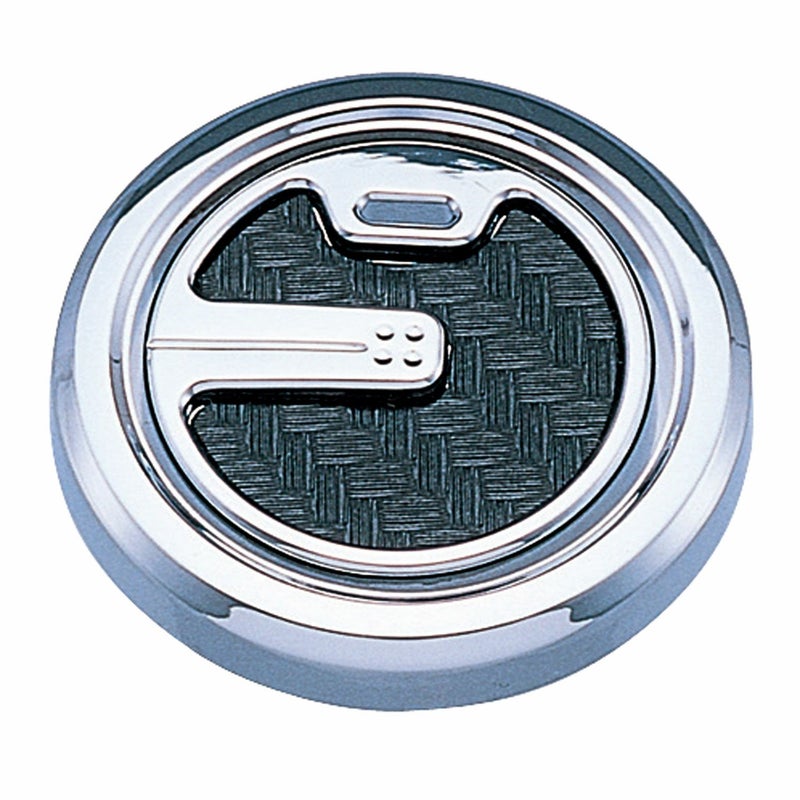 ・クロームメッキ仕上げのリングと高級感のあるカーボン調シートを使用した、車内用ドレスアップパーツです。