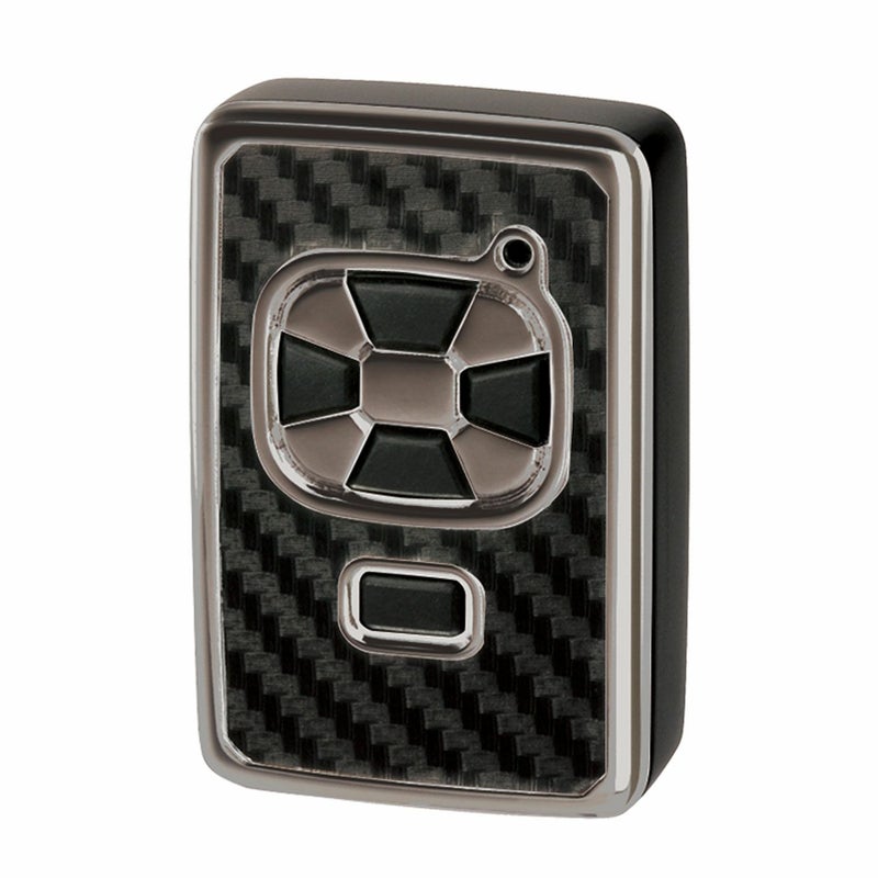 高級感のあるカーボン調シートを表面にあしらったキーカバー。ケースに純正リモコンキーを入れるだけの簡単装着。