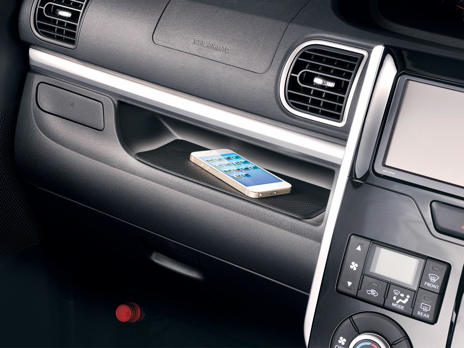 小物の滑り落ちを防止する滑り止めパッドです。ソフトエラストマーのグリップ力でインパネトレーやダッシュボード等にフィットし、小物を安定して置けます。接着剤や両面テープを不使用。のり残りなし。何度も取付けし直せます。