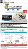 カーボン柄とブルーメタリックのスポーティなサングラスクリップ。駐車券などを挟めるクリップ付き。